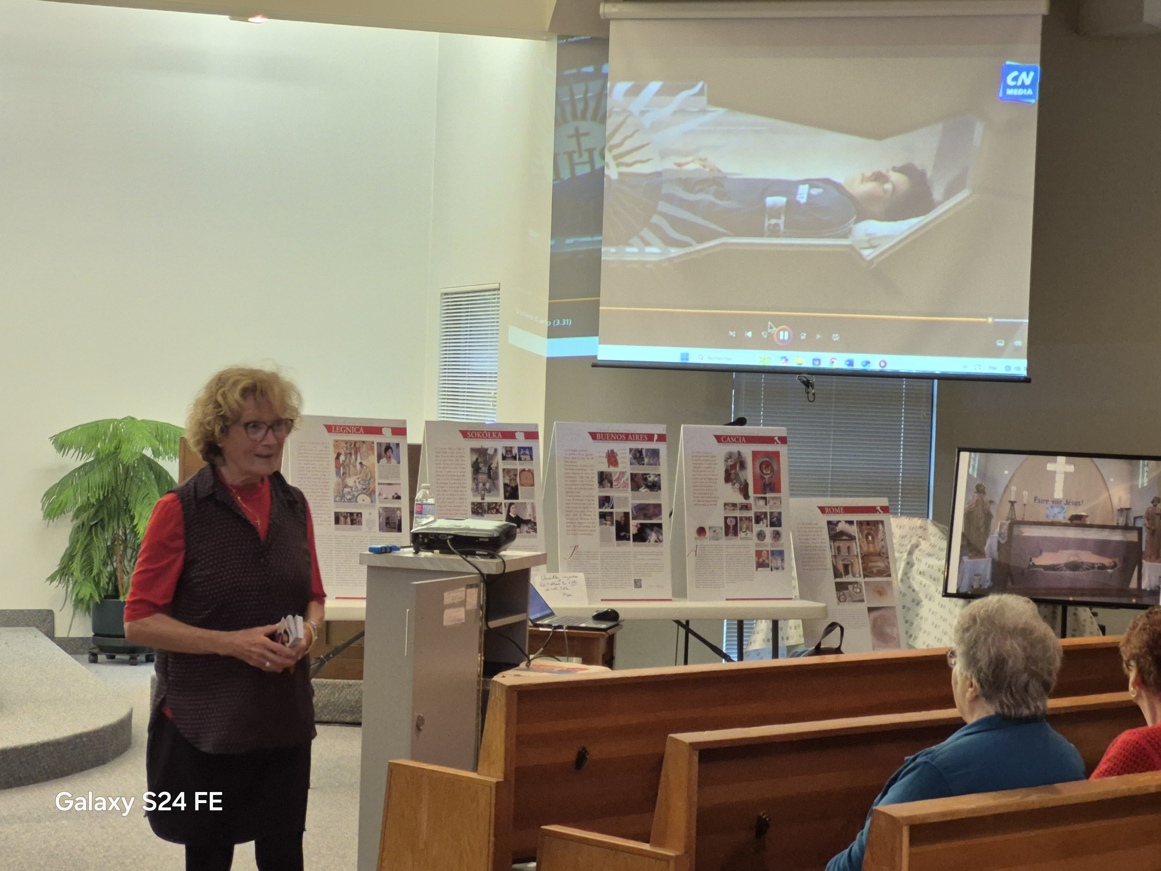 Le jeudi 18 septembre, à 19h, la Paroisse St-Eugène a eu la joie d'accueillir Mme Louise Normandeau qui est venue faire une présentation très dynamique et inspirante, au sujet du jeune italien, Saint Carlo Acutis. C'est à la source de l'Eucharistie, son 'autoroute vers le Ciel' que l'amitié de Carlo, avec Jésus, va s'affermir et rayonner dans toutes ses relations et ses activités au quotidien, qu'il joue au foot avec ses amis ou qu'il vienne en aide aux plus pauvres de son quartier. Carlo a créé un site internet pour recenser les Miracles eucharistiques de par le monde, afin de 'convaincre' les gens de la Présence réelle de Jésus dans la Sainte Eucharistie. Cliquez sur le lien suivant: Carlo Acutis Exposition « Les Miracles Eucharistiques ». ET sur ce lien: MIRACOLI EUCARISTICI - Mostra Internazionale Ideata e Realizzata da Carlo Acutis e Nicola Gori.
